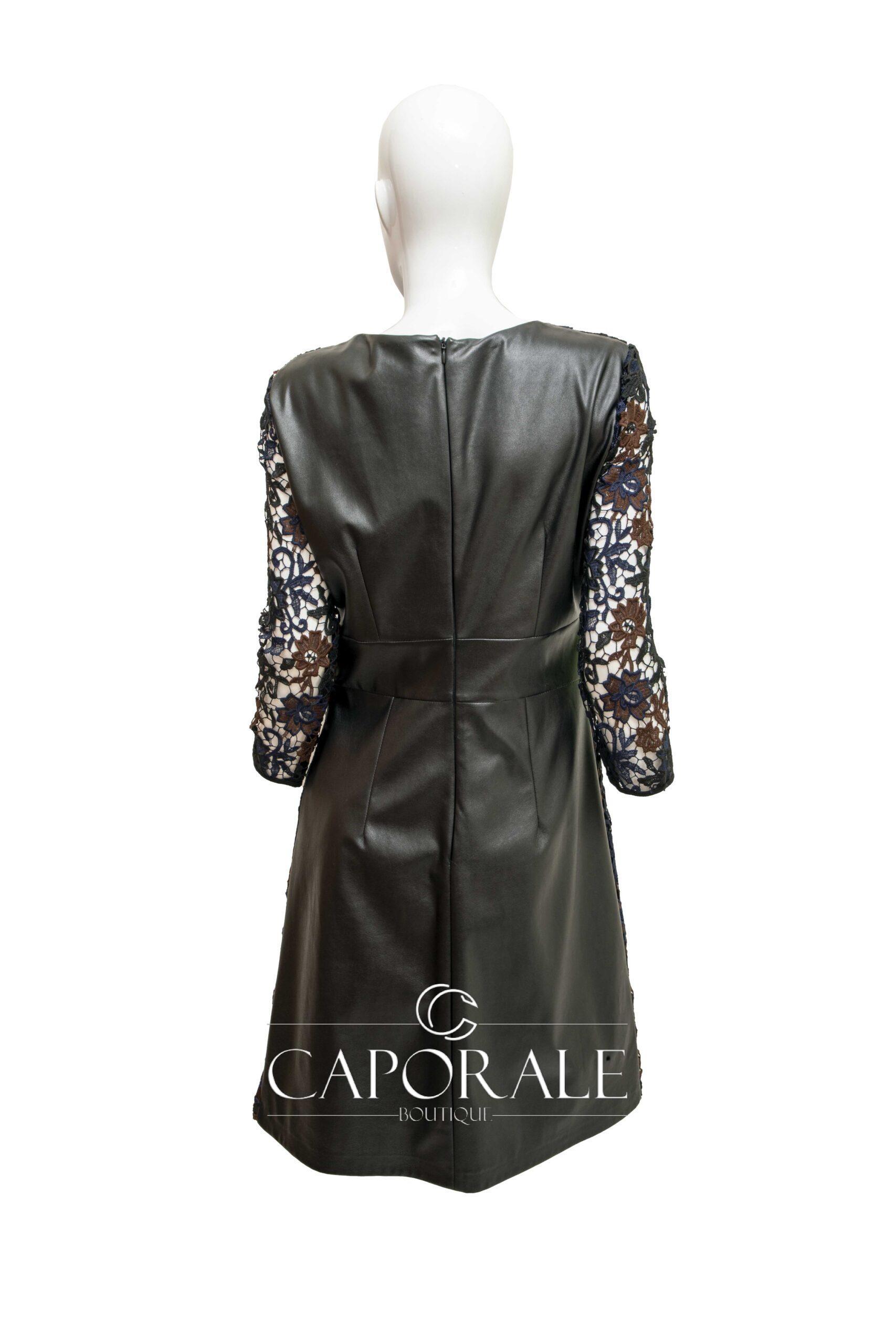 Materiale: 100% poliestere. Tessuto: 100% poliestere. Vestito con pizzo davanti e in pelle dietro. Chiusura con cerniera. Vestibilità regular.