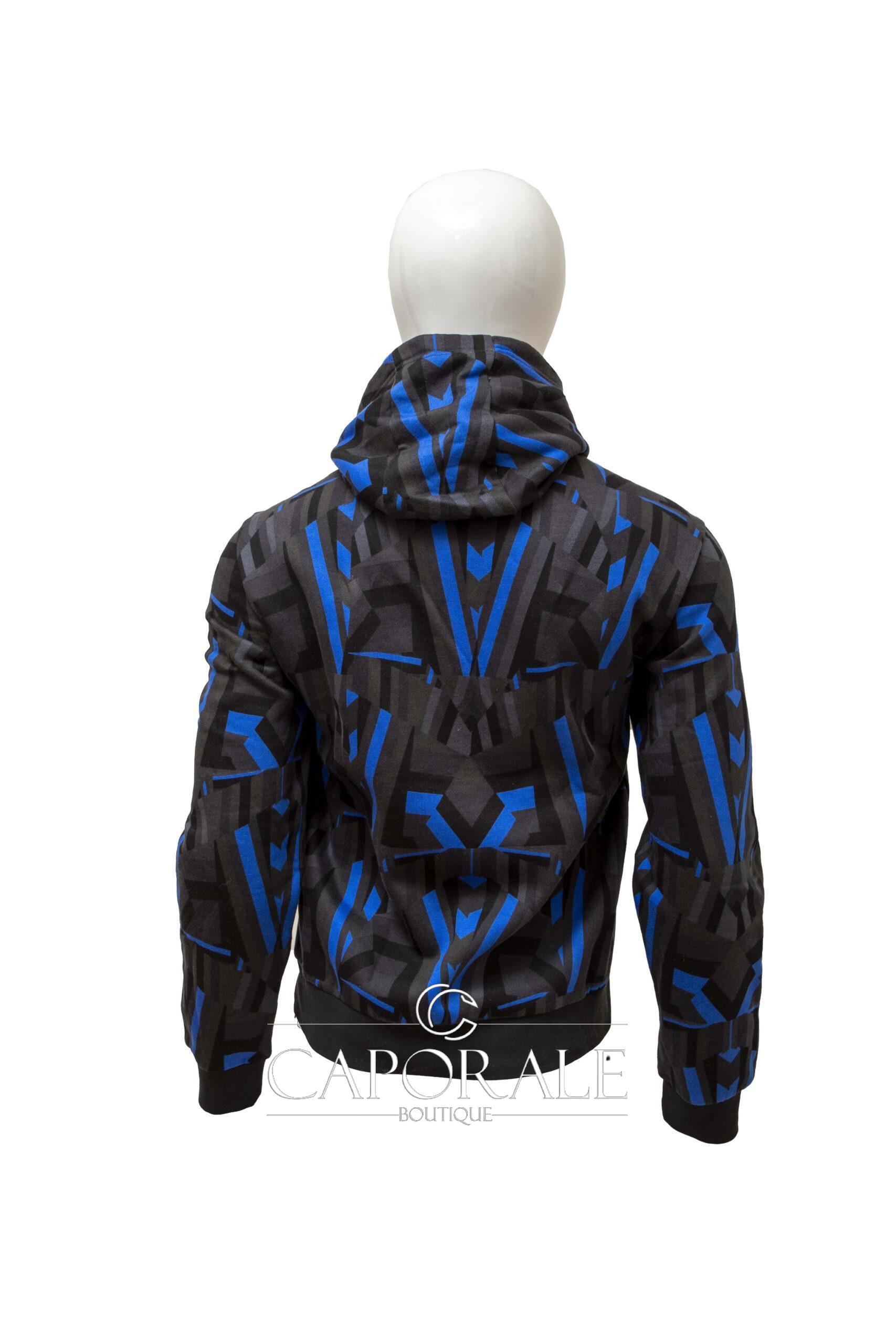 Tessuto: 80% cotone + 20% poliestere. Felpa colore nero con contrasto blu.
