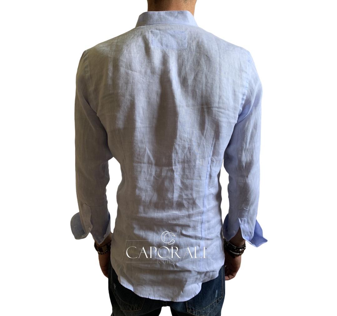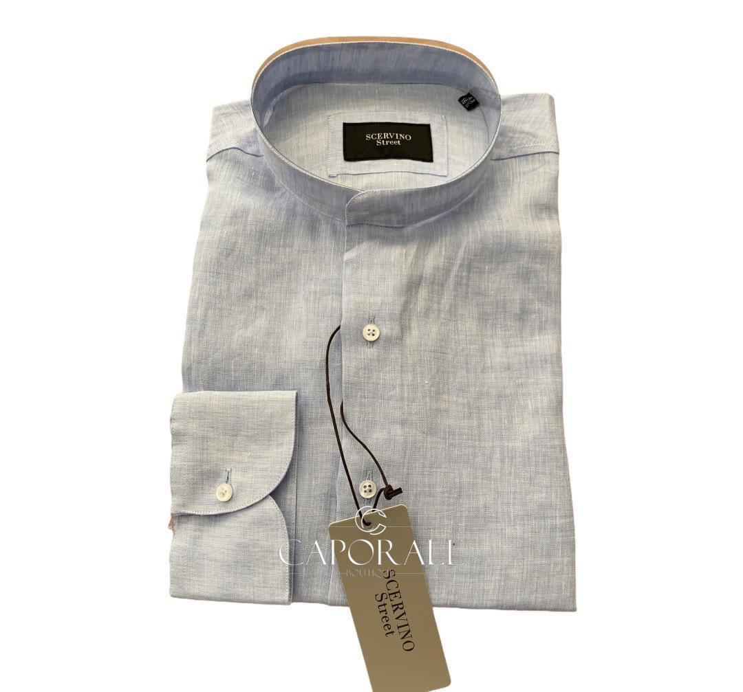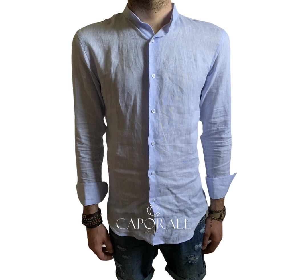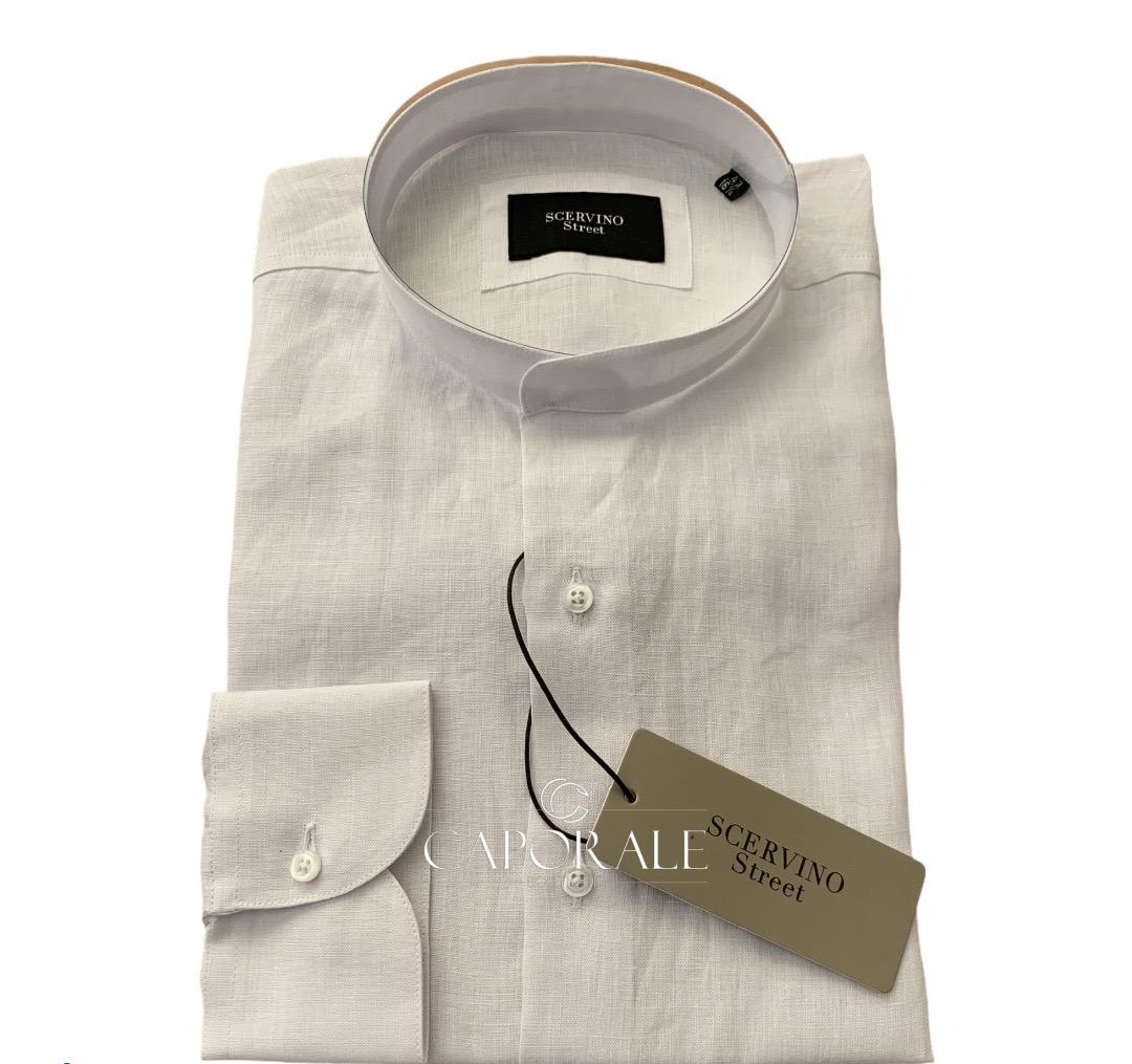 Camicia uomo lino Scervino Street, coreana, disponibile in vari colori (bianco/celeste)