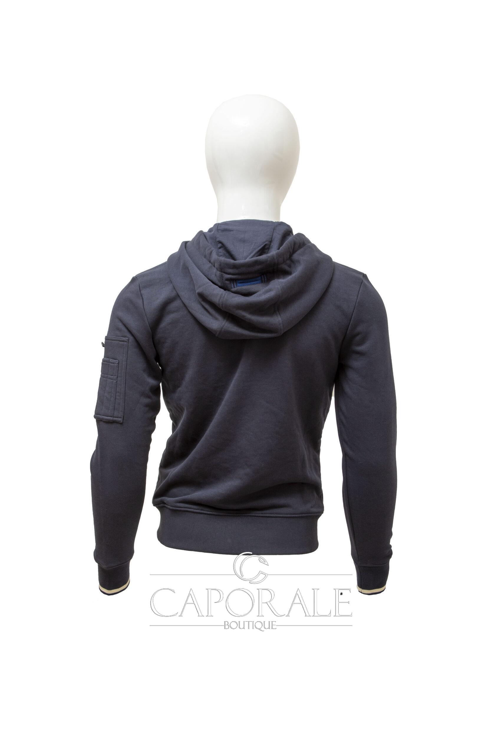 Tessuto: 80% cotone + 20% poliestere. Felpa con cerniera + cappuccio.