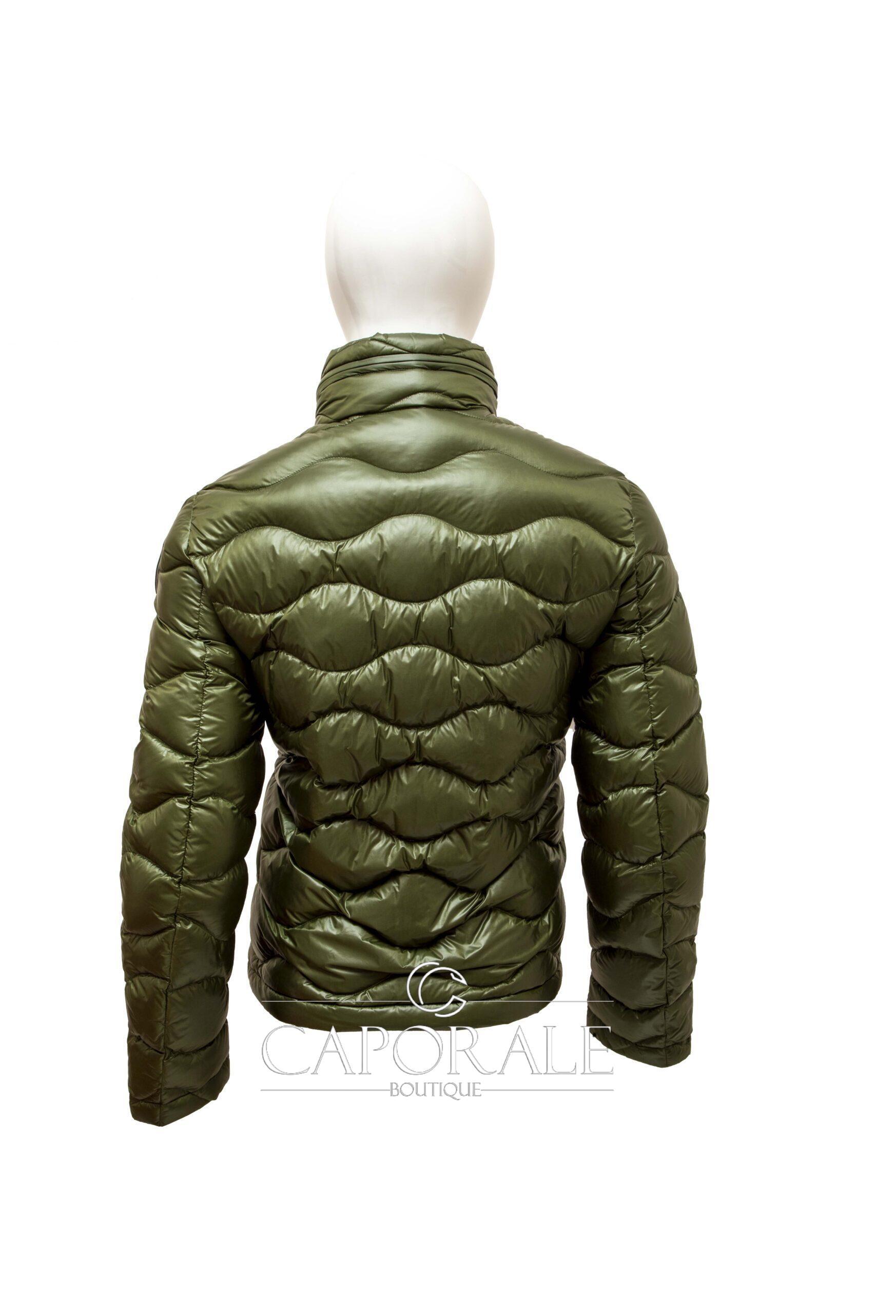 tessuto 100% poliammide, fodera 100% poliammide, imbottitura 90 % piumino d’anatra, 10 % piuma, chiusura con cerniera, cappuccio interno con cerniera