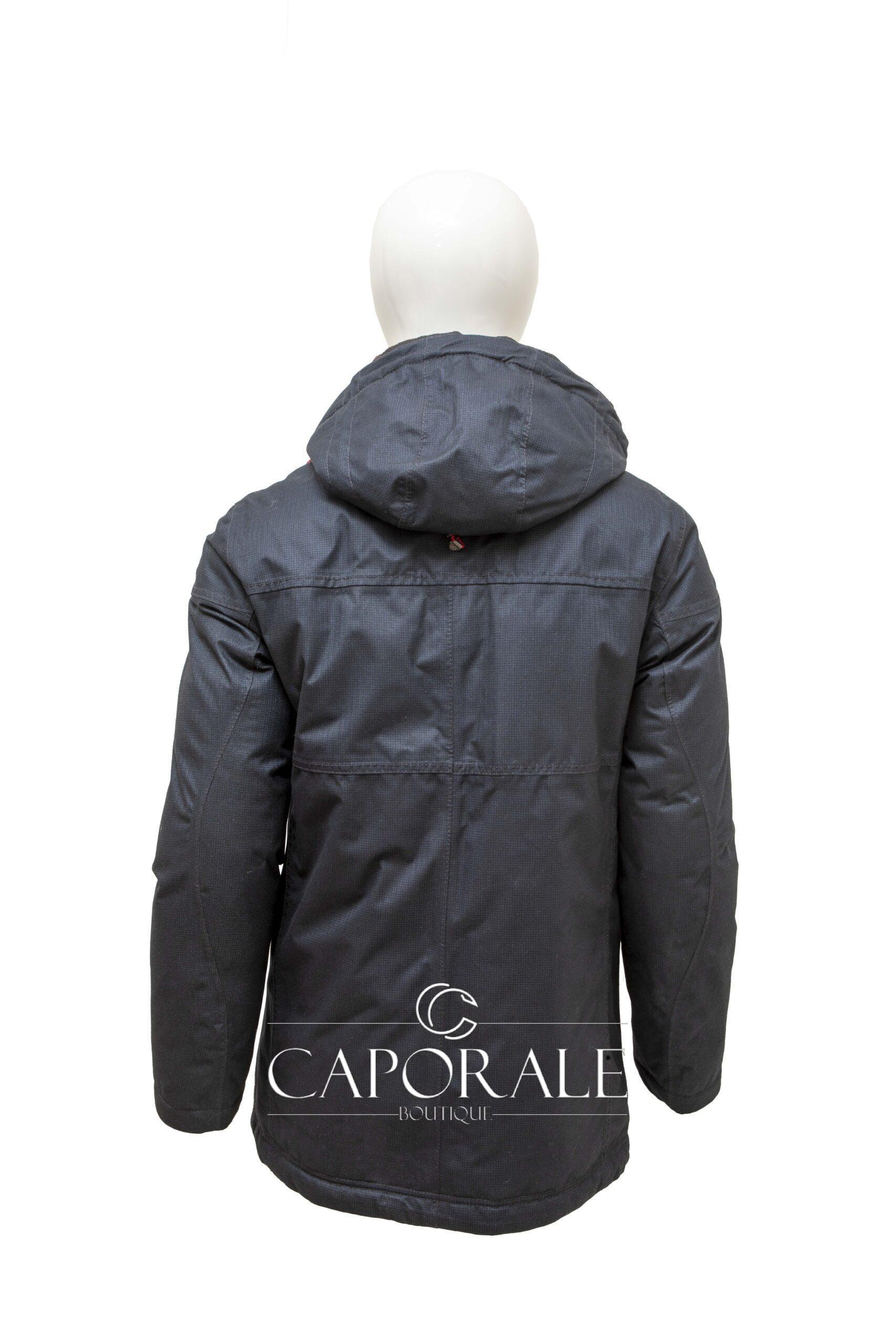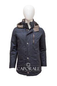 Modello con cappuccio staccabile foderato con pelliccia ecologica, taschino con zip sul lato sinistro del petto, due tasche laterali con zip, due tasche interne, polsini e allacciatura con cerniera e bottoni a pressione sul davanti.