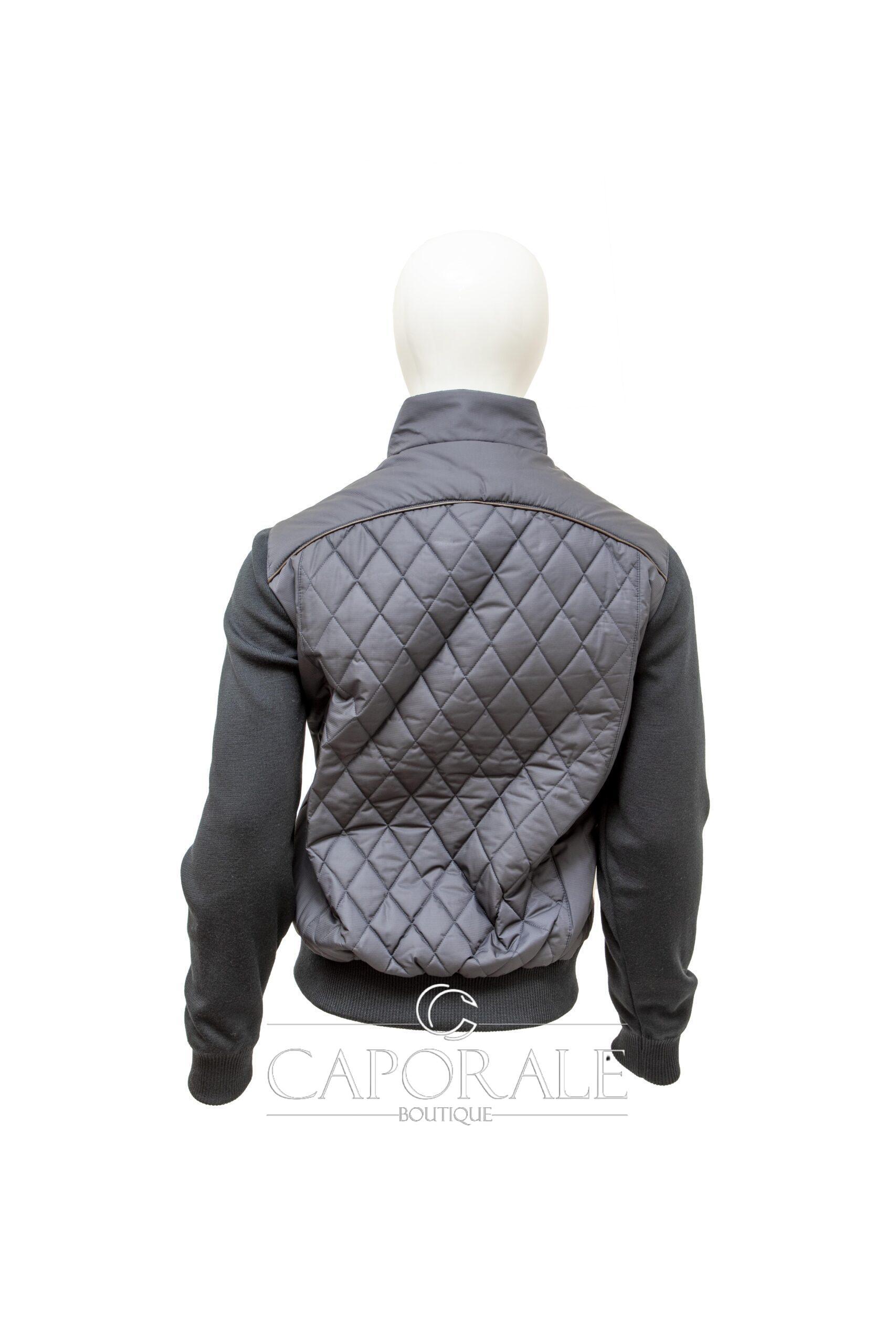 Giubbino trapuntato con chisura cerniera + 2 tasche esterne con cerniera + 2 con bottone a pressione + 1 interna.