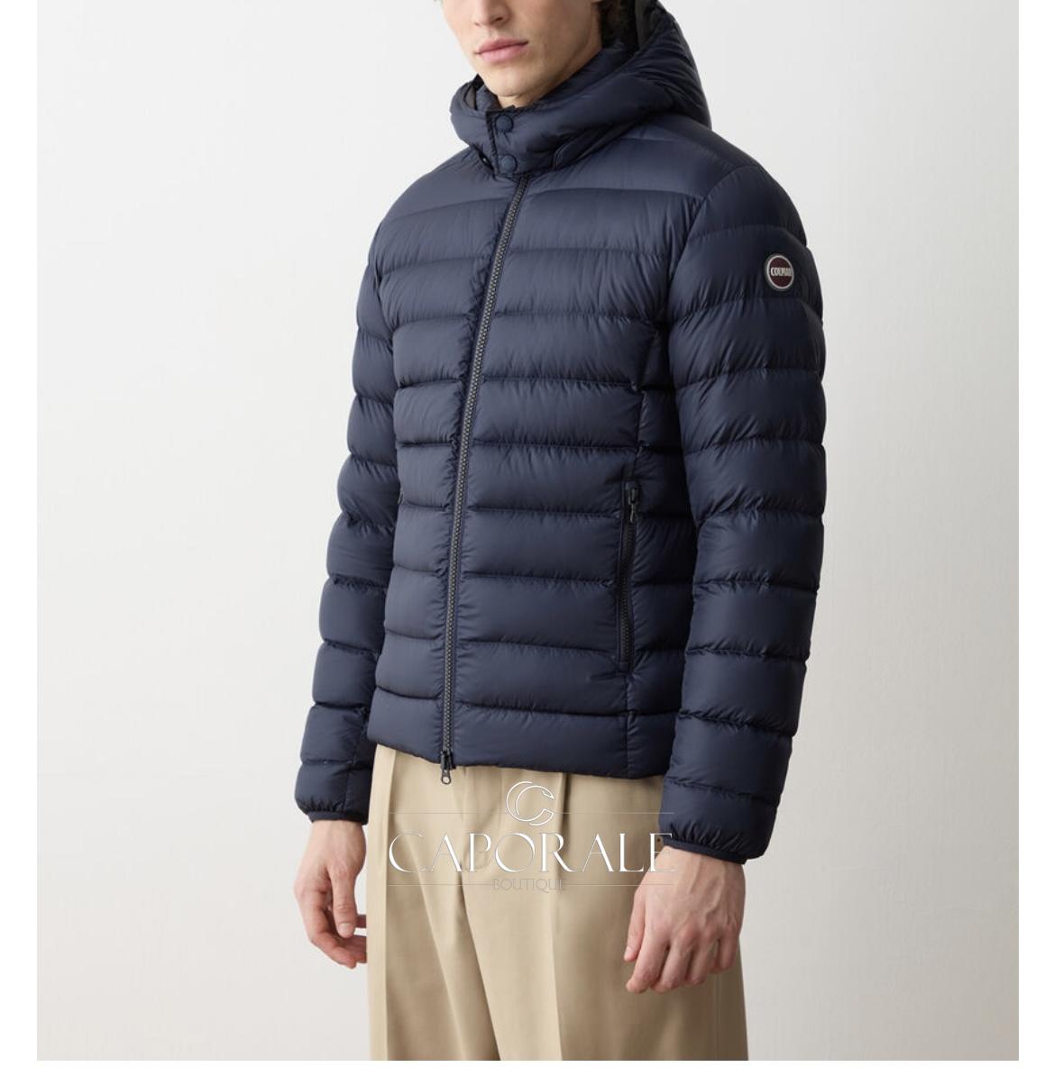 Giacca da uomo con cappuccio staccabile, realizzata in tessuto elasticizzato con trattamento idrorepellente ed imbottita in piuma naturale. Un modello evergreen con trapunti regolari su tutto il corpo ed un nastro elastico in tono a bordatura di polsi e fondo. Comode tasche laterali e pratico taschino interno. La coulisse sul cappuccio, permette di regolarne l’ampiezza.