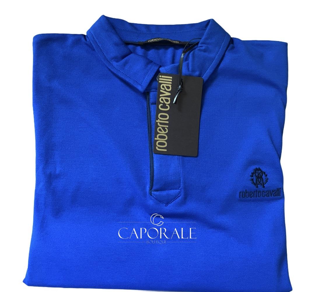 -67%Guida alle tagliePolo Uomo Roberto Cavalli Celeste, logo stampato in prossimità della manica