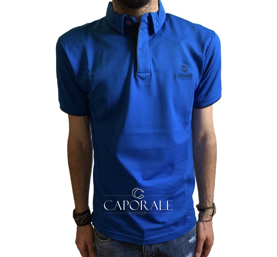 Polo Uomo Roberto Cavalli Celeste, logo stampato in prossimità della manica